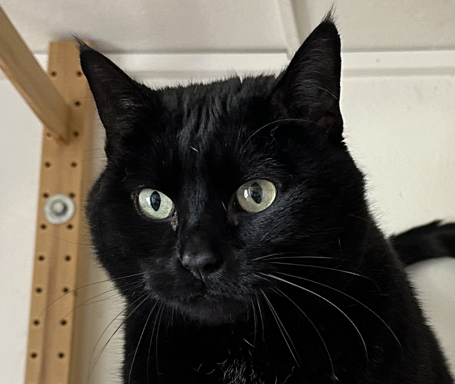 À 8 ans, Syrius est un magnifique chat noir au physique bien bâti : une tête large, un corps massif, et un pelage dense et doux qui le rend tout simplement irrésistible.
